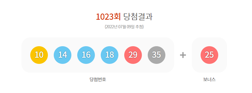 1023회 로또 추첨 번호는 다음과 같다.